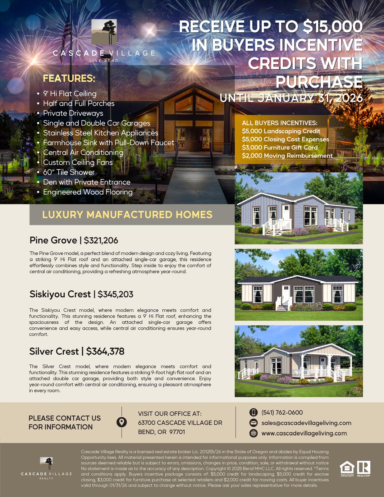 The community of Cascade Village is situated in the Northeast corner of Bend, within the Boyd Acres Neighborhood. This diverse neighborhood is a blend of residential properties, parks, trails, and businesses, and is located at an elevation of approximately 3,300 feet, in the rain shadow of the Central Oregon Cascade Mountains. The Deschutes River marks the western boundary of the neighborhood, while Hamby Road borders it to the East.